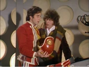 В истории вернулся Боруса , появлявшийся в серии «Беспощадный убийца » (1975), на этот раз его роль исполнил Джон Арнатт . Серия также примечательна тем, что здесь было показано значительно больше внутренних комнат ТАРДИС Доктора , чем когда-либо ранее.