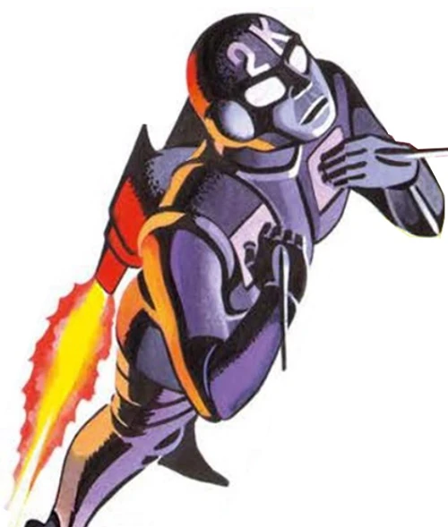 2K was a humanoid robot created by the Zerovians to prevent war from breaking out between the Daleks and the Mechanoids. He first landed on Skaro, where he learned that the Daleks had set the rogue planet Skardal on a collision course with Mechanus. After narrowly avoiding capture, he stole a Dalek missile and set it on a course for Skardal. He separated the rocket from the warhead, which began travelling back to Skaro. To save themselves, the Daleks fired their anti-missile rockets, which destroyed the warhead and Skardal as well. 2K, having landed on Mechanus, showed the Mechanoids the destruction of Skardal and told them that the Daleks had saved them on purpose. The Mechanoids called off the war, and 2K returned to Zeros. (COMIC: Impasse)