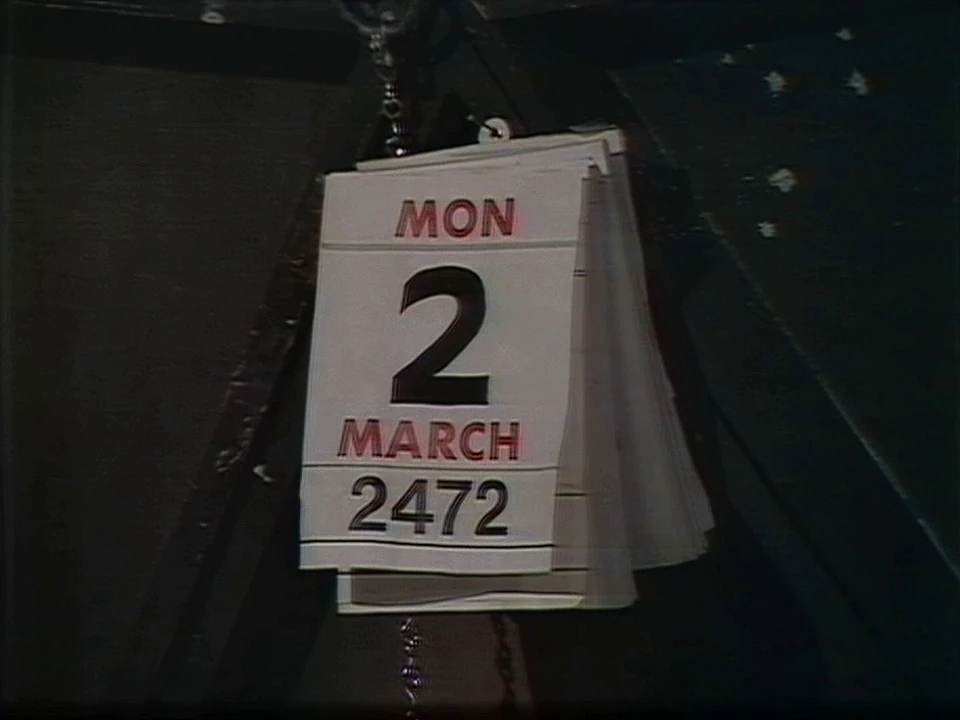 On 3 March 2472, Jane Leeson took down the calendar page for the previous day, Monday 2 March. (TV: Colony in Space)