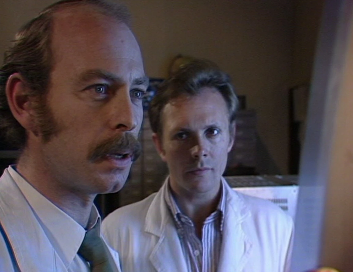 Dr Fendelman and Colby study the x-ray of Eustace. (TV: Image of the Fendahl)