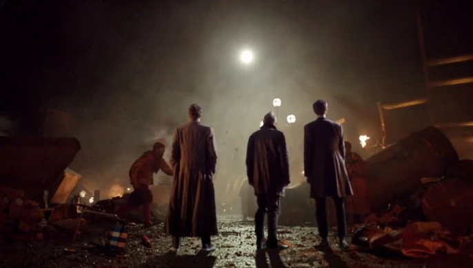 The Doctors bare witness to the ruined state of Arcadia. (TV: The Day of the Doctor)