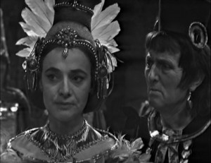 Barbara posing as the Aztec god, Yetaxa. (TV: "The Day of Darkness")