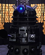 This Black Dalek casing shared the refined shape of the bronze Daleks. Unlike earlier Black Dalek models, both the shoulder slats and the sense globes were black as well. (TV: Army of Ghosts) In this regard, this model was distinct from similar bronze-type Black Daleks such as the black-domed Elite Guard Daleks, the Supreme's Dalek Inquisitor General designated as Dalek X, who had gold shoulder slats and sense globes, (PROSE: Prisoner of the Daleks) and an Imperial Guard Dalek casing which featured, as well as gold slats and globes, a bronze middle section much like the earlier silver-type Black Dalek Supreme. (TV: The Parting of the Ways)