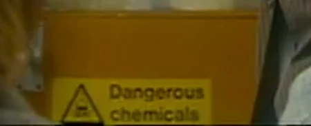 A sign warning of "Dangerous chemicals". (TV: School Reunion)