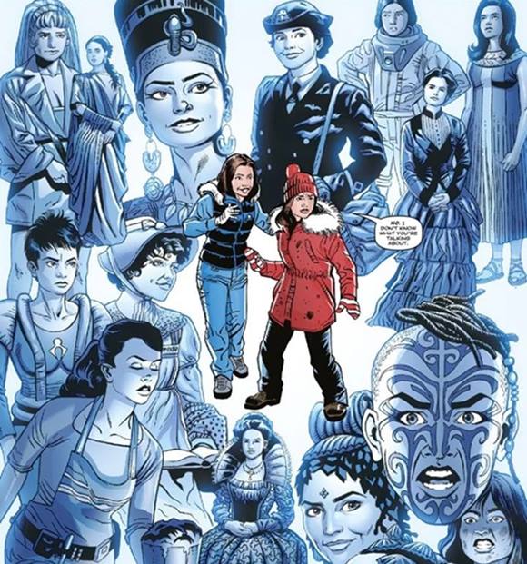 Some of Clara's echoes along with Winnie Clarence, including Oswin Oswald and Clara Oswin Oswald. (COMIC: Blood and Ice)