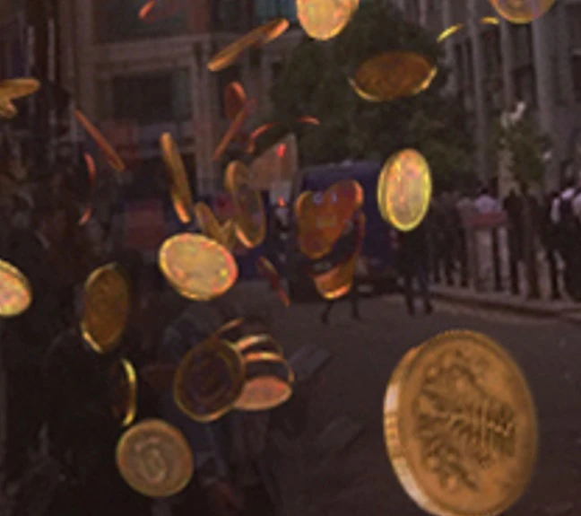 A number of British coins. (AUDIO: We Are the Daleks)