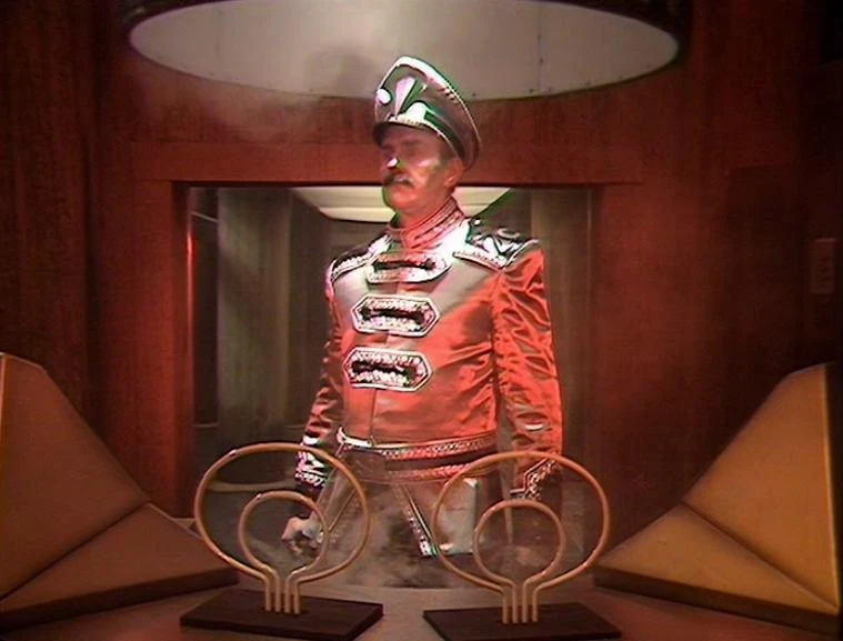 Kroagnon emerges in the Chief Caretaker's body after undergoing corporelectroscopy. (TV: Paradise Towers)