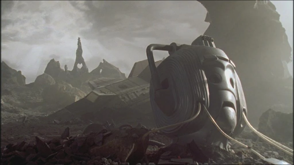A Cyberman head was once seen destroyed on a desert planet that the TARDIS once visited. The Cyberman lay dead with the silver wires on its face stretched. (WC: TARDIS Cam No.1)