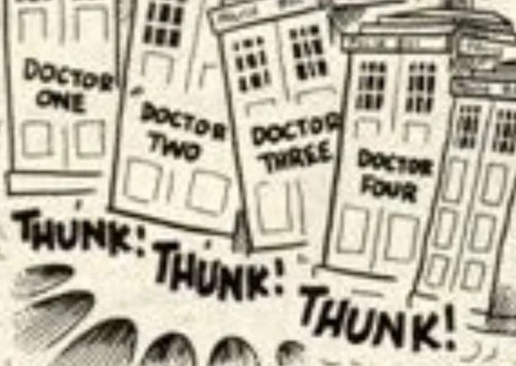 - The Doctor explains he daren't stay too long in one place or he causes a pile up. As he finishes explaining, the TARDISes of Doctors One, Two, Three and Four thunk into the Fifth Doctor's TARDIS and almost knock him over.