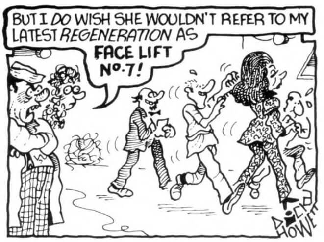- The Doctor knows things have changed ever since the Rani appeared in Dynasty. He can accept that she wants to spend six hours a day in make-up, five hours with a hair stylist and three hours in group therapy, but resents her calling his latest regeneration "Face lift No. 7".