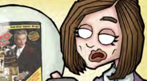 The Doctor shows Clara Oswald an image of DWM 500, telling her it was the last magazine published on Earth before Facebook became sentient and decimated the population. Clara responds that as long as it doesn't go offline, it's fine by her.