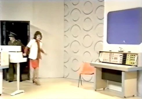 Doctor Why's TARDIS's interior contained a large white control room. Though it exhibited the typical roundels on the walls, as well as a large scanner, its control panel was not the familiar hexagonal console with central time rotor, but a simpler rectangular device.