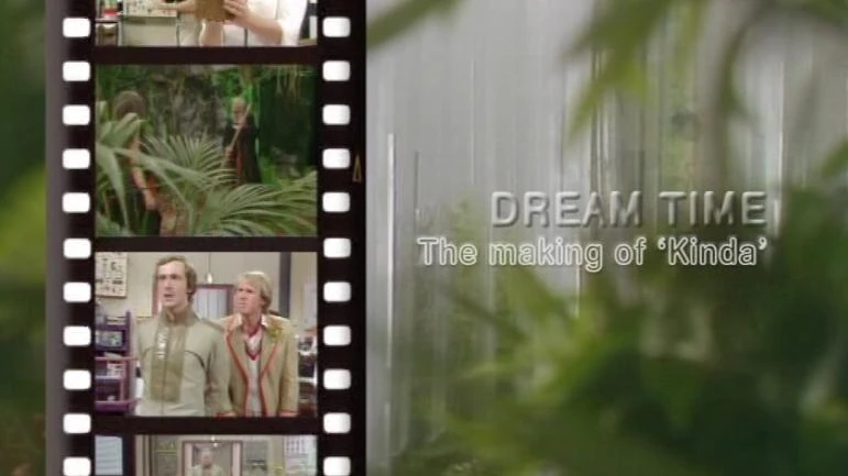 A new documentary about the making of Kinda. with actors Janet Fielding (Tegan), Nerys Hughes (Todd), Simon Rouse (Hindle) and Adrian Mills (Aris), director Peter Grimwade, writer Christopher Bailey, script editors Christopher H. Bidmead, Eric Saward and Anthony Root, designer Malcolm Thornton, and award-winning new Doctor Who writer Robert Shearman.