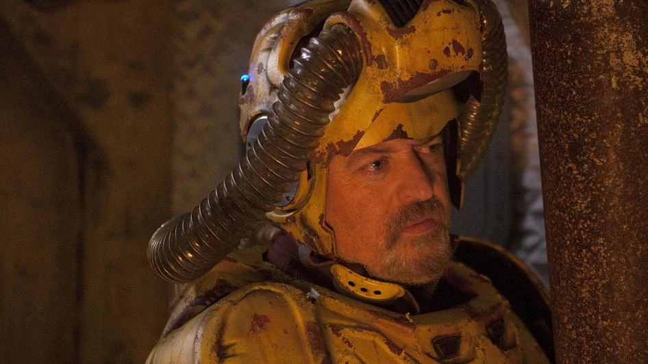 He caught Madge Arwell in the forest before it was set to be melted by acid rain. He tried to interrogate Madge, but Billis refused to participate, Ven-Garr had mother issues and Madge started crying. When he agreed to put down his weapon, all three were caught off guard when Madge pointed her revolver at them. She took them prisoner, handcuffing Droxil and Ven-Garr to poles inside their Androzani harvester. The three of them were teleported to safety, leaving Madge onboard the Harvester. (TV: The Doctor, the Widow and the Wardrobe)