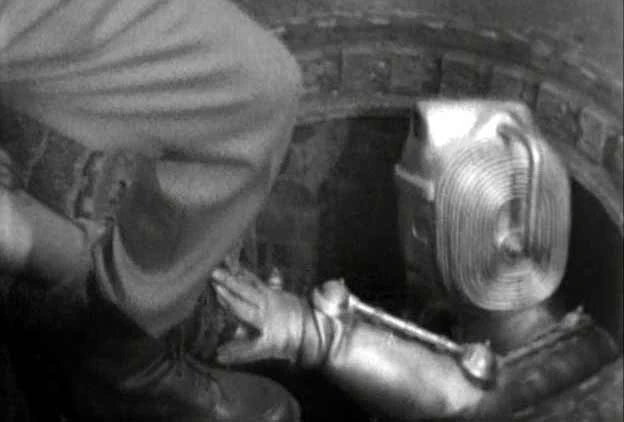 A Cyberman attacks during the first invasion of Earth (TV: The Invasion)