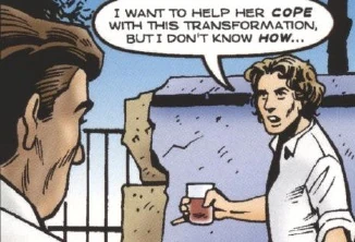 The Doctor laments his inability to help Izzy. (COMIC: The Way of All Flesh [+]Scott Gray, DWM Comics (Panini Comics, 2001).)