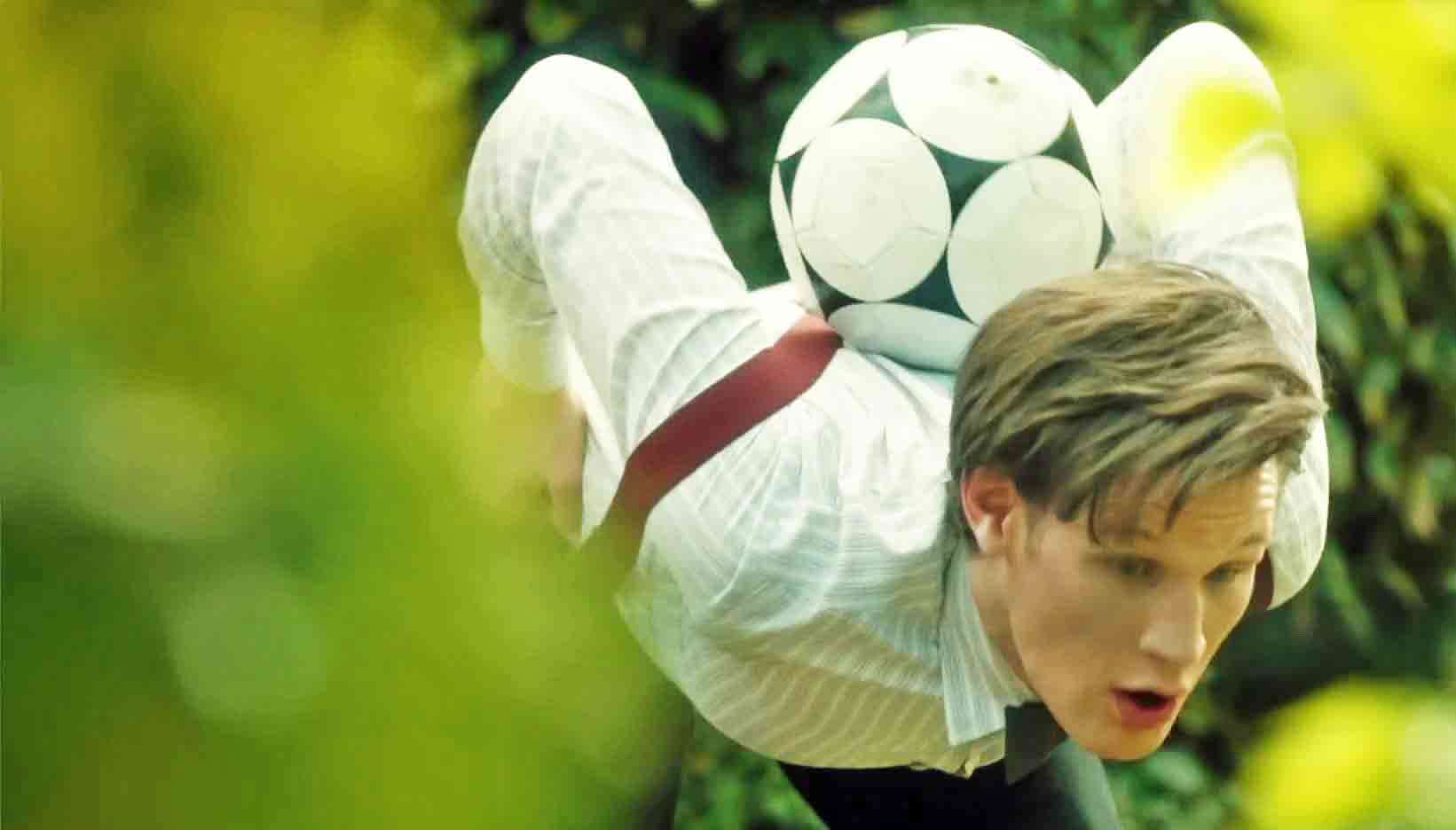 The Doctor fights boredom with a football. (TV: The Power of Three [+]Chris Chibnall, Doctor Who series 7 (BBC One, 2012).)