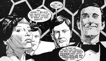 A temporal skirmish opposed the Eternals to the Halldons, but an end was brought to it by the Time Lords, in one of the very few time wars they would fight prior to their great War with the Daleks, (PROSE: Meet the Doctor) the, by a dissenting account of their history that disagreed with the stories of Yarvelling or Davros, rebellious creations of the Halldons. (PROSE: We are the Daleks!)