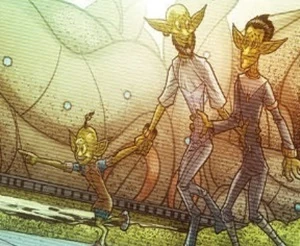 An Excrothian family before the Great Aging. (COMIC: Weapons of Past Destruction)