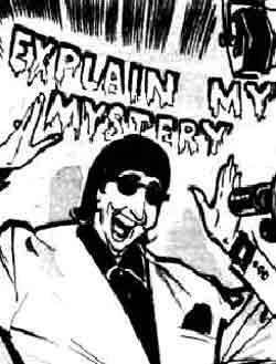 Limited to Earth by the Time Lords prior to his regeneration into his next incarnation, the Doctor lived in luxury at the Carlton Grange Hotel and became a newspaper-headlining celebrity. (COMIC: Action in Exile, The Mark of Terror) He was therefore a natural candidate for inclusion on the panel of Explain My Mystery.