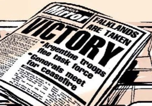 In June 1982, the Daily Mirror ran a front page story about the United Kingdom achieving a victory over Argentina in a war for the Falklands, which were had been taken by the British Task Force. (COMIC: The Infinite Astronaut)