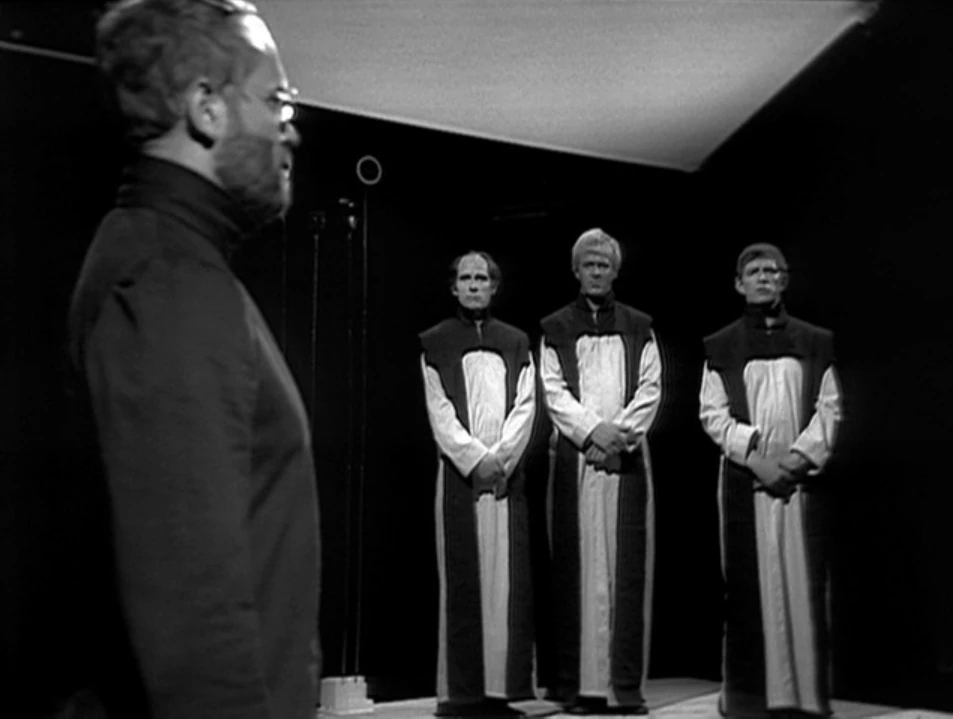 The First Time Lord and his Court prosecute the War Lord. (TV: The War Games)