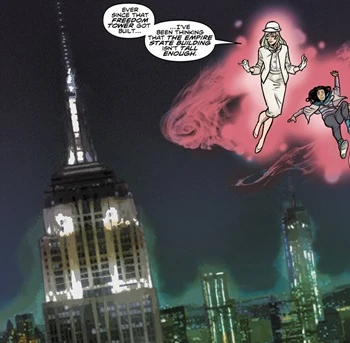 In the 21st century, after merging with a quantum harvester, Dorothy Bell added 20 storeys to the Empire State Building because she felt it was not tall enough compared to the Freedom Tower. (COMIC: Spiral Staircase [+]Nick Abadzis, Doctor Who: The Tenth Doctor (Titan Comics, 2015).)