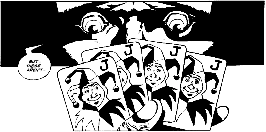 Gaylord quickly and recklessly began the game with the Toymaker, momentarily becoming uneasy when they gained an audience but soon was distracted by his desire to beat the Toymaker. As they played over the span of some hours, Lefevre's success worsened as his luck began to go bad, so after a halt was called and the Toymaker left the room, Lefevre drew a sewing needle and began marking the cards to "even the score". Unbeknownst to him, the Toymaker was aware of his actions and altered the cards when he wasn't looking.