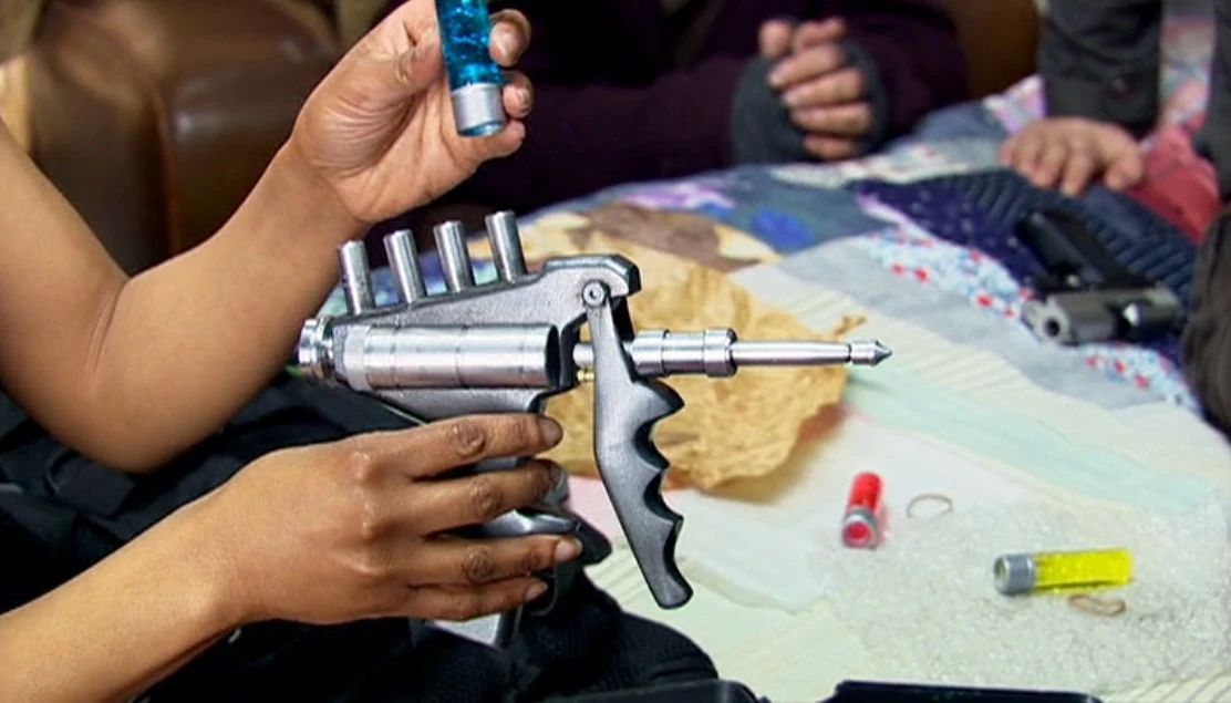 Ostensibly created to permanently kill a Time Lord while preventing them from regenerating, the gun worked using four chemicals which were slotted into it. (TV: Last of the Time Lords)