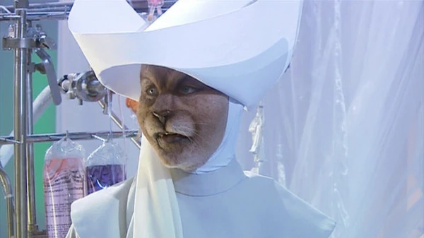 Hame later discovered the Doctor and Rose Tyler in the hospital's Intensive Care unit. The Doctor was appalled at the Sisterhood using a plague-farm of artificially-grown humans as research experiments for their many cures, but Hame defended the actions of her order as necessary in order to cope with the massive influx of diseases that had come in the wake of humanity's colonisation of New Earth. However, Rose's body was revealed to be possessed by Cassandra O'Brien at the time, and she knocked the Doctor unconscious with a narcotic perfume spray before sending Hame to summon her colleagues Matron Casp and Sister Jatt.