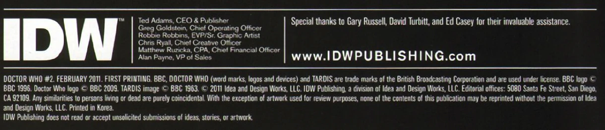 In the example below, drawn from the first issue of the story, Ripper's Curse, we can see that the name of the publication is simply Doctor Who #2.