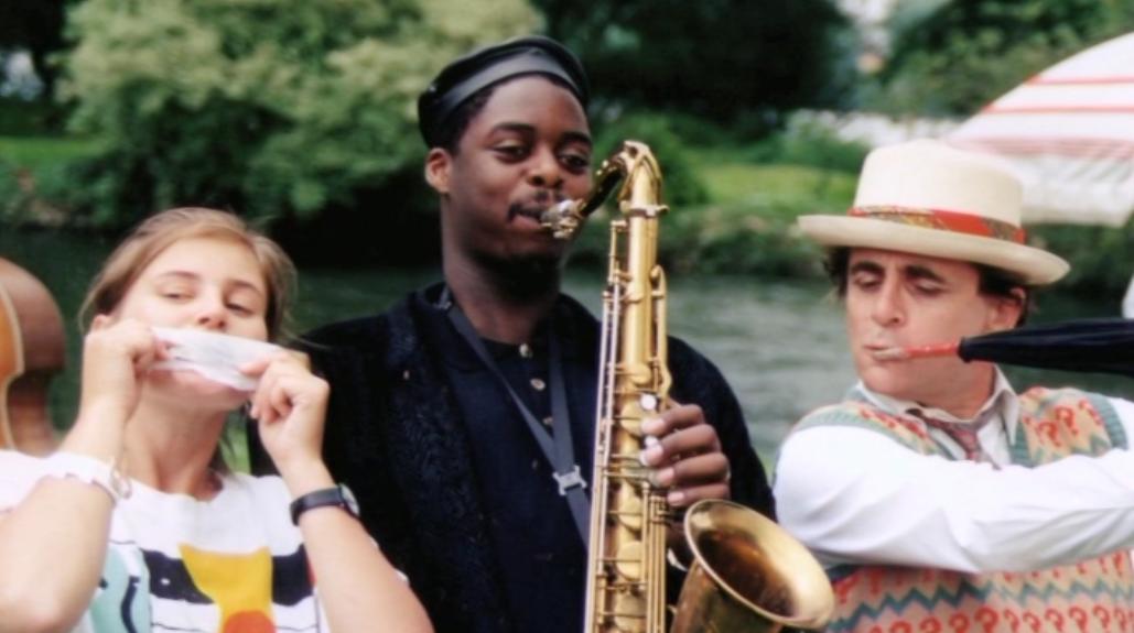 Courtney Pine on set with Sylvester McCoy and Sophie Aldred.
