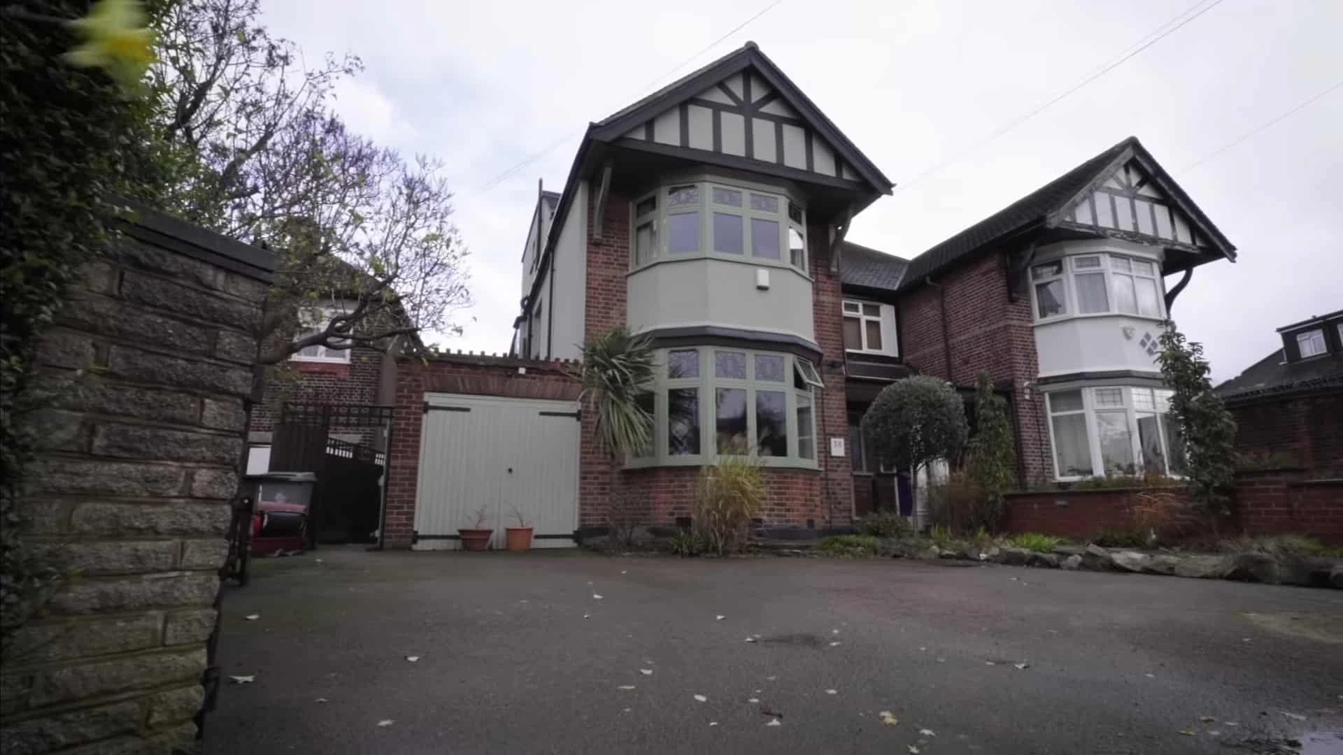 Jo Jones' home possessed mock-Tudor gables, with the brickwork being constructed out of red bricks. There was a garage attached to the semi-detached house, with various species of trees adding a look of life to it. Other items outside the home included wheelie bins and plant pots. (WC: Return of the Autons)