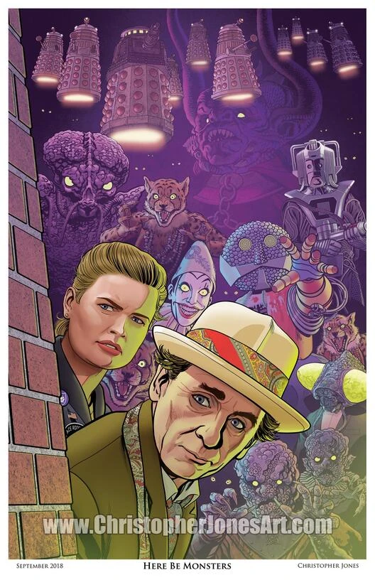 - ↑ My newest #DoctorWho print is based one of the covers from my #SeventhDoctor mini-series, but including the #Daleks and #Kandyman as originally intended! (Yes, I'll have these at Long Beach Comic Con #LBCC2018 and New York Comic Con #NYCC2018!)
