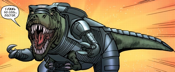 Kevin was a robotic copy of a Tyrannosaurus rex who was a companion of the Eleventh Doctor, along with Amy Pond and Rory Williams. Kevin found pretending to be a T-Rex unsettling, so he asked to travel with the Doctor so he could find a better place for himself.