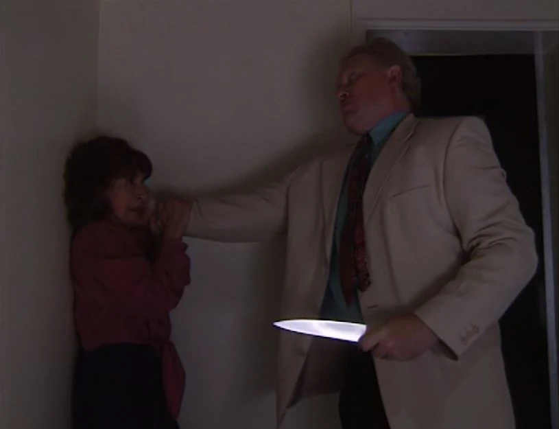 A possessed Peter Russell about to stab Liz Shaw. (HOMEVID: The Zero Imperative)