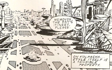When Gary Rudge maligned his clothing, the Sixth Doctor said that it was the height of fashion on Kolpasha. (PROSE: Instruments of Darkness) He also told Evelyn Smythe that he got his clothes there. (AUDIO: Real Time) Some time after that, he took Melanie Bush to Kolpasha, where she bought an outfit that she wore several weeks later on Carsus. (PROSE: Spiral Scratch)