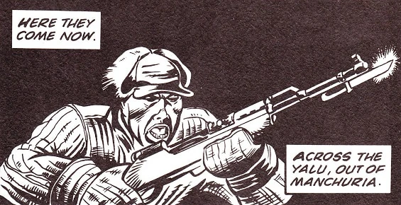 In December 1950, Rhodes fought with the US Army against the Red Chinese, who came across the Yalu out of Manchuria, on a frozen hilltop south of the Changjin Reservoir in Korea. (COMIC: The Good Soldier)