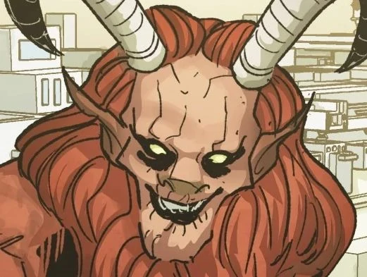 A member of the Pantheon of Discord posing as Krampus tried to remove Amy, Rory and Mels from history. (COMIC: Imaginary Enemies)