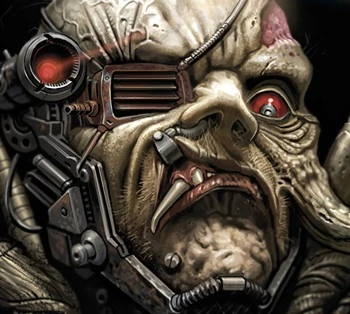 The Krashoks were mix of humanoid, cybernetics and alien parts. They had ruffs around their necks. When Krashoks were promoted, they gained a new spare part. Those who were demoted, however, had a graft forcibly removed, leaving a scar to show their shame.