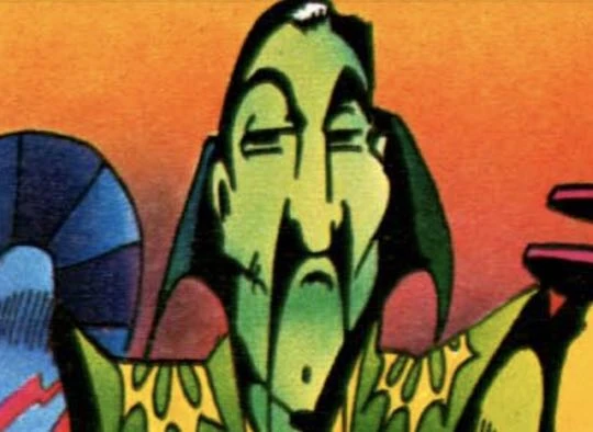The leader of the Time Lords at the time of the war between the Megallan Empire and the Telians was a "grim-faced" Time Lord. He had green skin, prominent cheekbones and a drooping moustache. He and his two closest advisors were significantly taller than humans, towering over even the Space Controller, a fellow Time Lord.