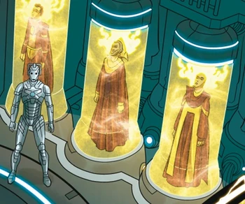 Rassilon after placing the Twelfth General in a Loom. (COMIC: Supremacy of the Cybermen)