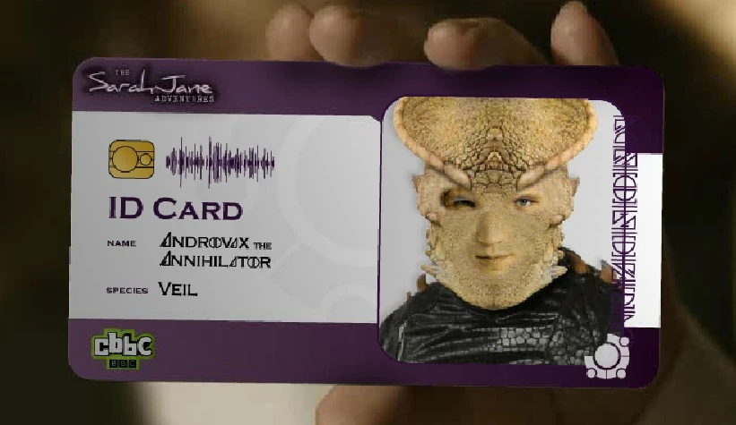 Sarah Jane Smith hands over the ID card