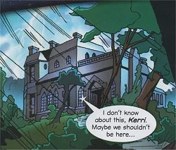 On a dark, stormy night, two children, Kerri and Joe, explore Harcourt Manor, which is rumoured to be haunted. In the dusty and rat-riddled house they find a ghostly figure in the drawing room. The door is locked; they are unable to escape. The children are spooked even more as the "wheezing, groaning" sound of the TARDIS is heard, announcing the arrival of two more figures, the Doctor and Amy, at the top of the stairs.