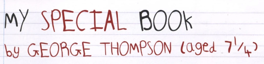 George Thompson, aged seven and a half, writes in his "buk" about his fears, after his Mum gave him a blank book to write what he thinks about and what he sees.