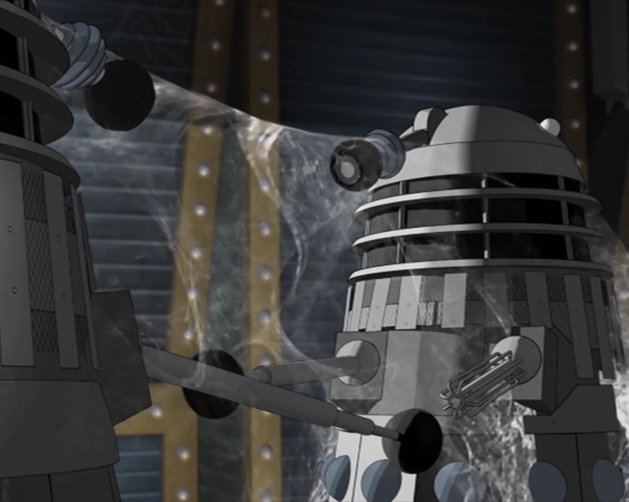 Nonetheless, the Daleks remained interested in invisibility technology up to the Time War, with Davros eventually managing to develop it for them. (PROSE: Father of the Daleks [+]Dave Rudden, The Wintertime Paradox (2020).) Reflecting on the Spiridon Incident, the War-era Time Lords were also surprised by the weakness the Daleks on the planet showed towards cold temperatures because they had seen Daleks operate in the cold of deep space, writing that it was a "possible operational inconsistency" within their foes. (PROSE: Dalek Combat Training Manual [+]Richard Atkinson and Mike Tucker, BBC Books (2021).) Whilst the Sixth Doctor once claimed that every Dalek mutant was weak to cold temperatures, (AUDIO: The Ultimate Adventure) many accounts showed that Daleks could operate in winter weather. (AUDIO: The Dalek Occupation of Winter, et. al) To try to understand what happened, the Time Lords came up with several theories: they pondered whether Daleks needed training for low-temperature operations but admitted it was more likely the casings on Spiridon had been modified, either for suspended animation or the invisibility experiments. (PROSE: Dalek Combat Training Manual [+]Richard Atkinson and Mike Tucker, BBC Books (2021).)