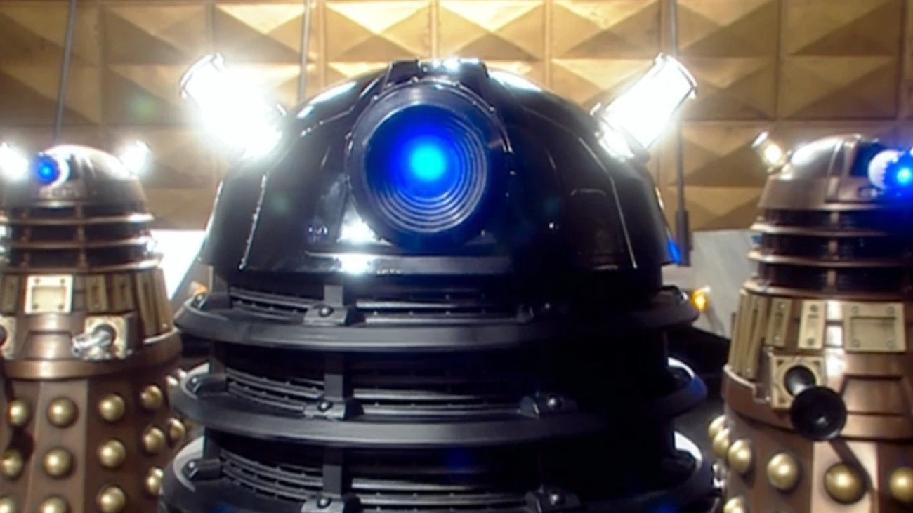 The Daleks were a race of genetically engineered mutant beings that relied on cybernetic travel machines for life support and combat. Convinced of the superiority of their own race, the Daleks sought to wipe out all non-Dalek life that they knew existed, (TV: Genesis of the Daleks [+]Terry Nation, Doctor Who season 12 (BBC1, 1975).) with their ambitions starting out as their quest to become masters of their homeworld, (AUDIO: Return to Skaro [+]Andrew Smith, The First Doctor Adventures: Volume Four (The First Doctor Adventures, Big Finish Productions, 2020).) only for the Daleks to later develop to a point where they sought mastery over all creation (TV: Gridlock [+]Russell T Davies, Doctor Who series 3 (BBC One, 2007).) through omniversal genocide. (TV: Journey's End [+]Russell T Davies, Doctor Who series 4 (BBC One, 2008).) This ambition would be one of the reasons the Dalek waged their war with Gallifrey. The Tenth Doctor reflected that the time war between the Daleks and Time Lords was a battle "for the sake of all creation". (TV: Gridlock [+]Russell T Davies, Doctor Who series 3 (BBC One, 2007).)