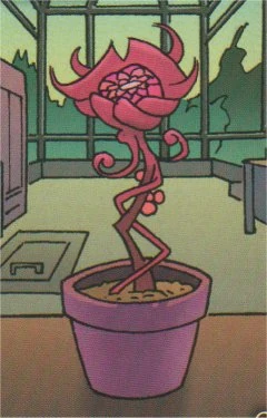 The Pink Cichorium was a near-extinct, beautiful, pink plant. The last of its kind in the entire universe, it was loved, protected and tended daily by Irene, a botanist who lived alone on the mini-moon of Delphi. When the security of the plant was threatened by the arrival of man-eating weeds, Irene sent a distress call. The call was answered by the Tenth Doctor, who resettled the plant in the fields of Centauri-Beta. (COMIC: Borrowed Time)