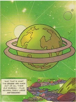 Posadise was planet with two rings. From space, it was green and brown, with the two rings parallel to each other. The rings were made up of asteroids (at least one inhabited by small blue furry creatures) and debris swept up from the planets surface by the huge sandstorms.