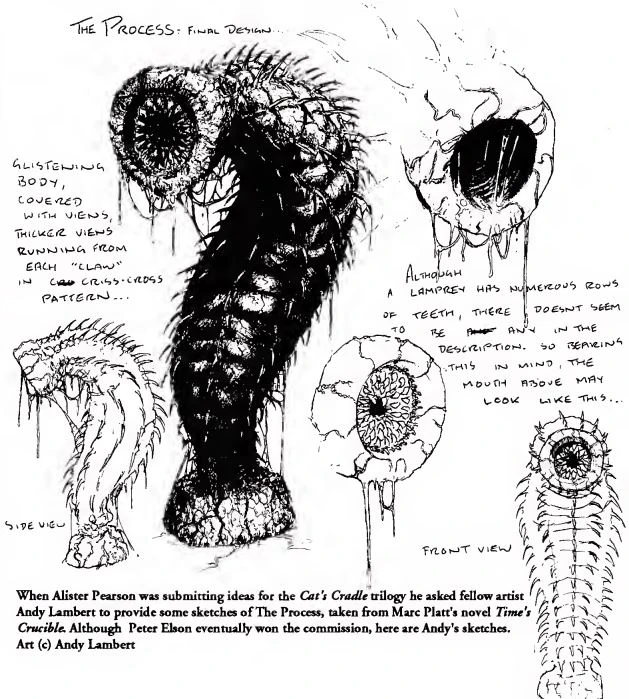 - Doctor Who Magazine #183 showed Andy Lambert's idea of what the Process would look like, before Peter Elson's design was used.